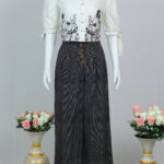 TOP-WHITE CROP TOP WITH COLLAR NECK THREAD WORK.