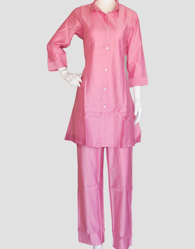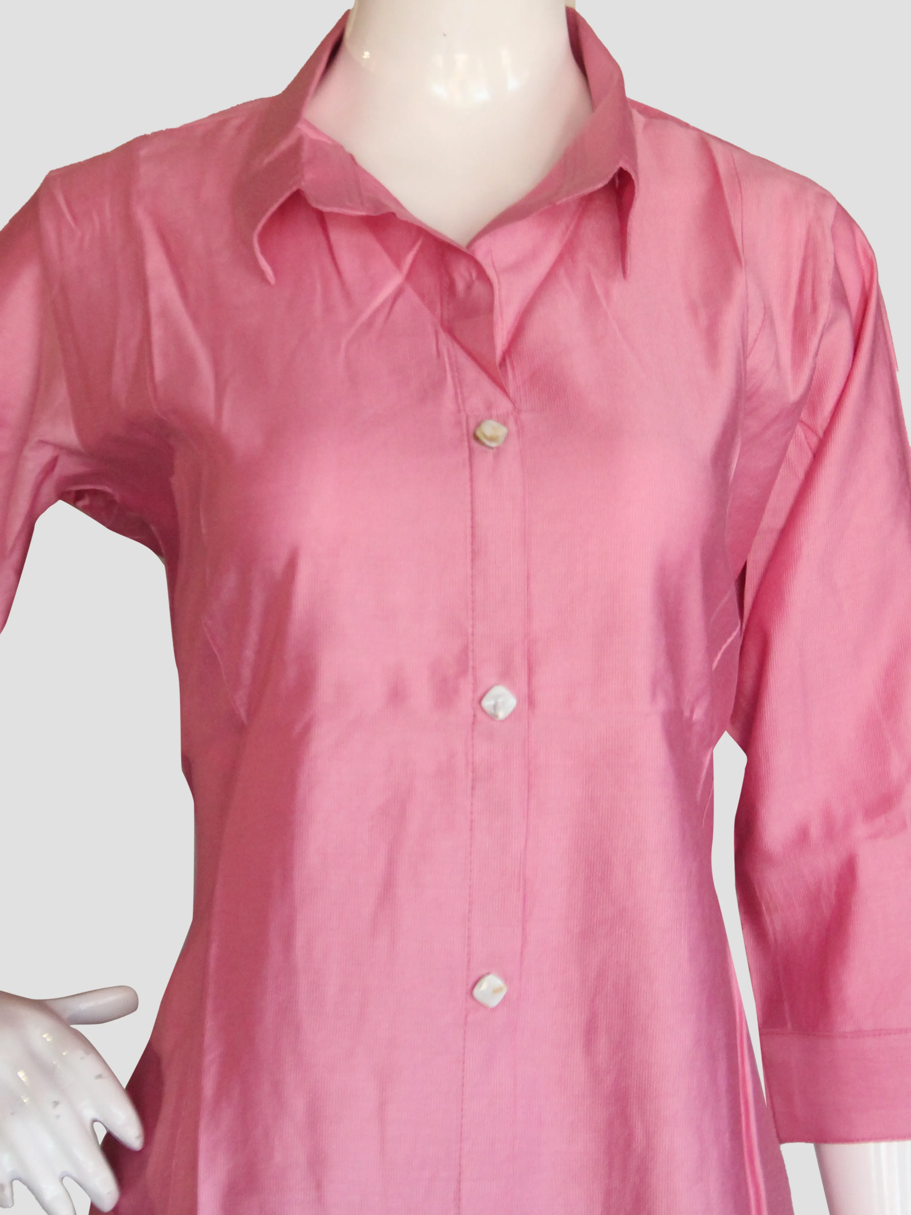 TOP – SILK COTTON FABRIC WITH COLLAR NECK AND CUFF SLEEVES.