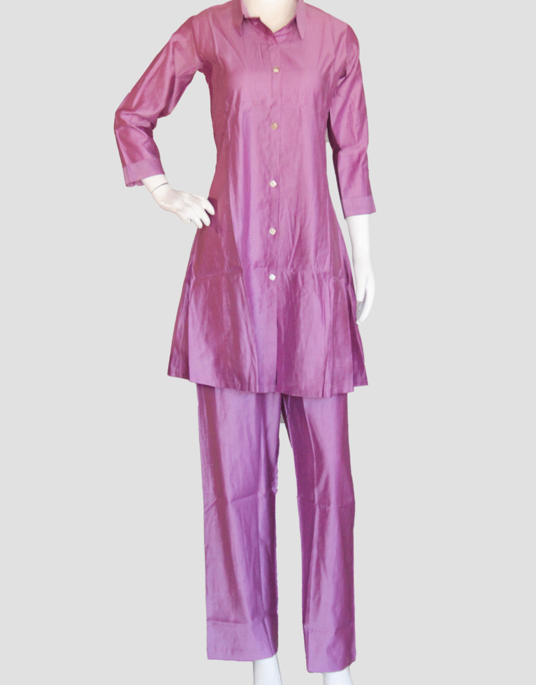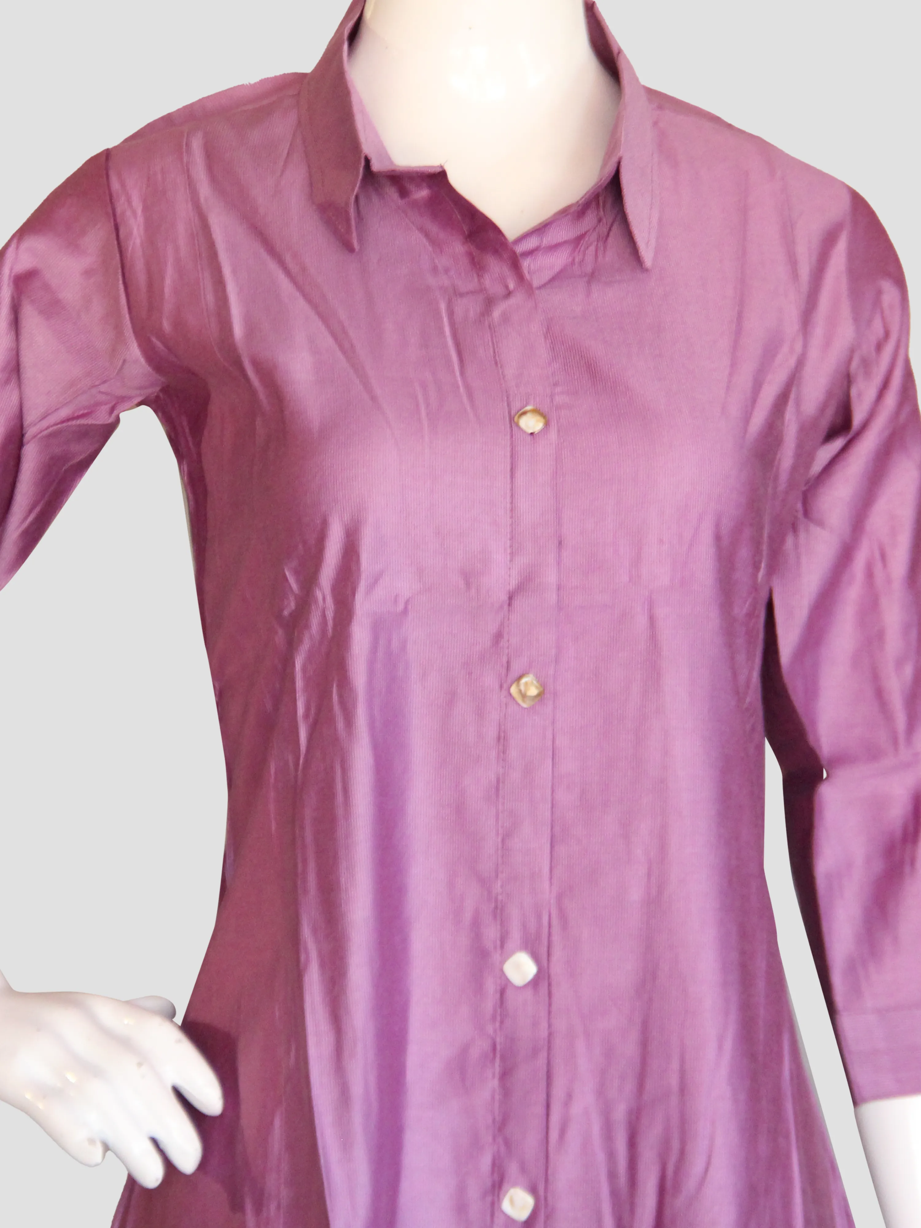 TOP – SILK COTTON FABRIC WITH COLLAR NECK AND CUFF SLEEVES.