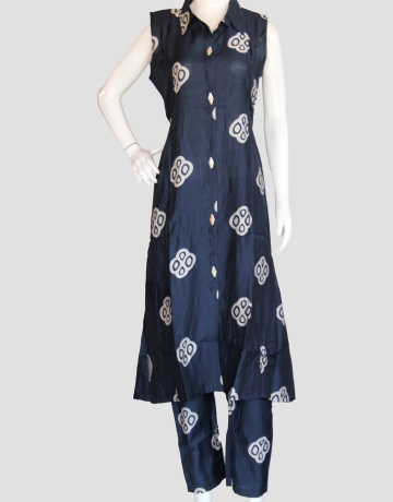 TOP – SILK COTTON FABRIC PRINTED TOP WITH COLLAR NECK. [SLEEVES AVAILABLE].