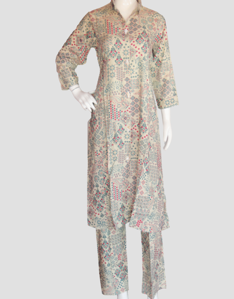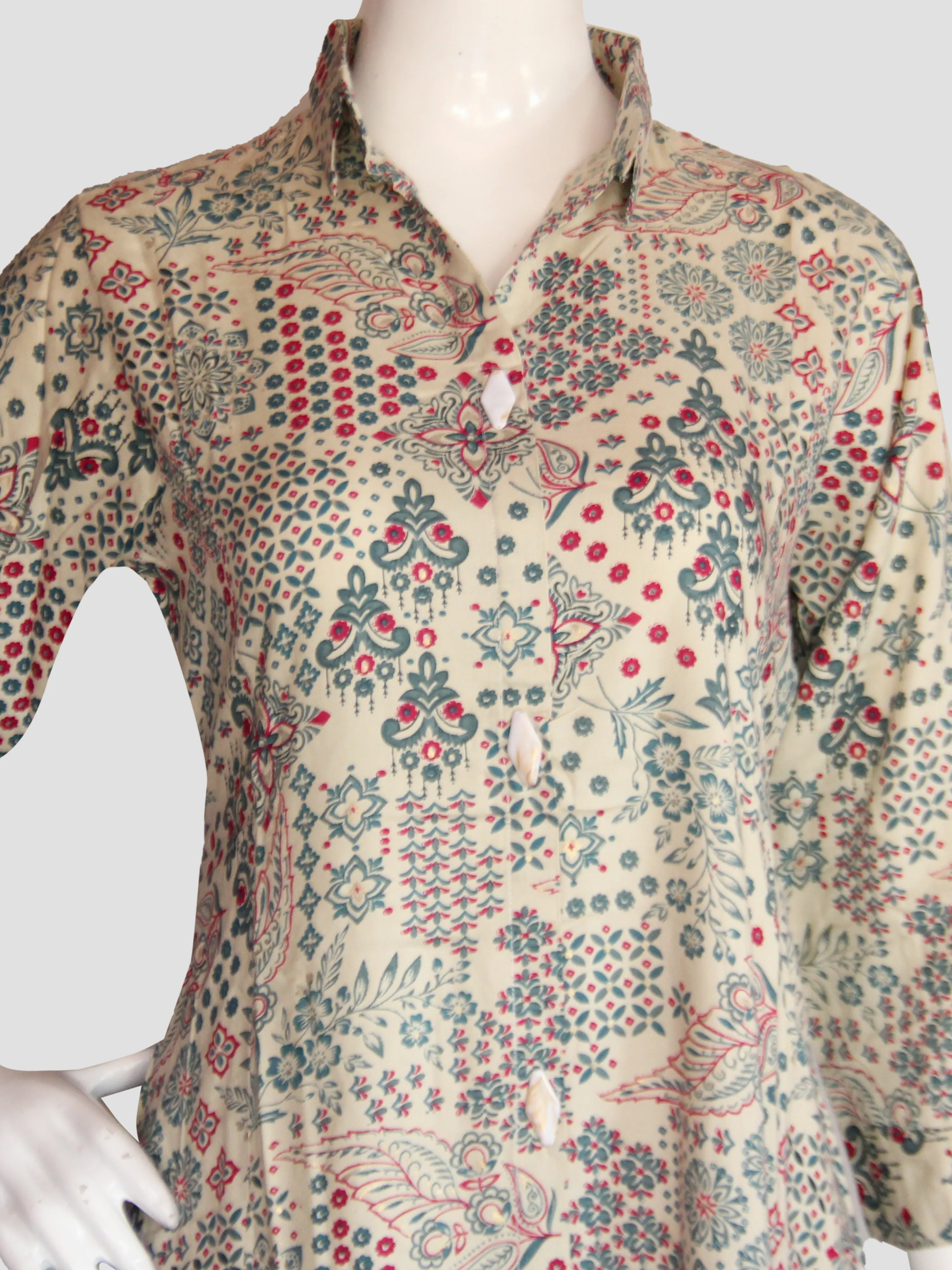 TOP- PRINTED TOP WITH COLLAR NECK AND CUFF SLEEVES.