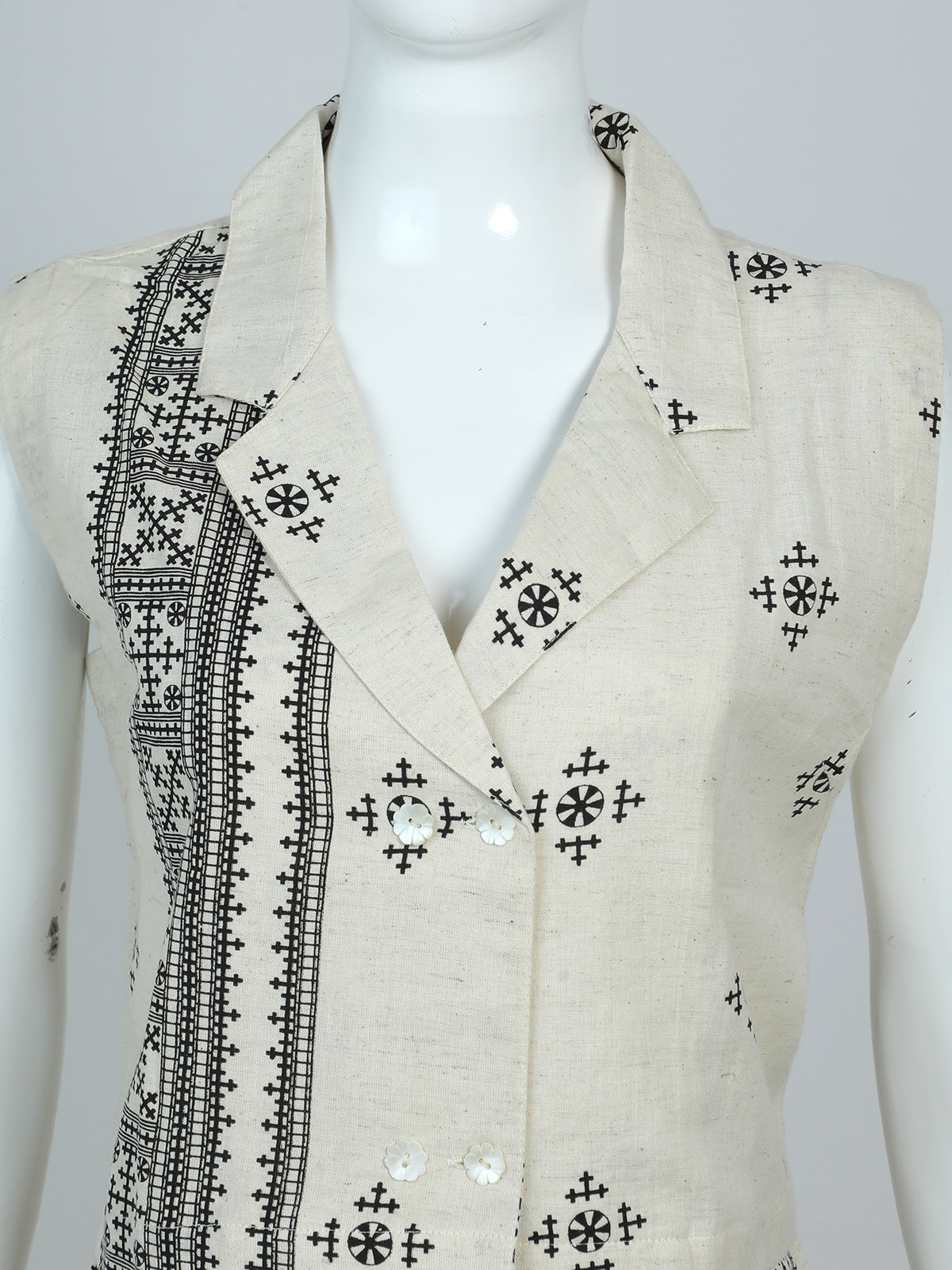 TOP-PRINTED COTTON FABRIC WITH COLLAR NECK