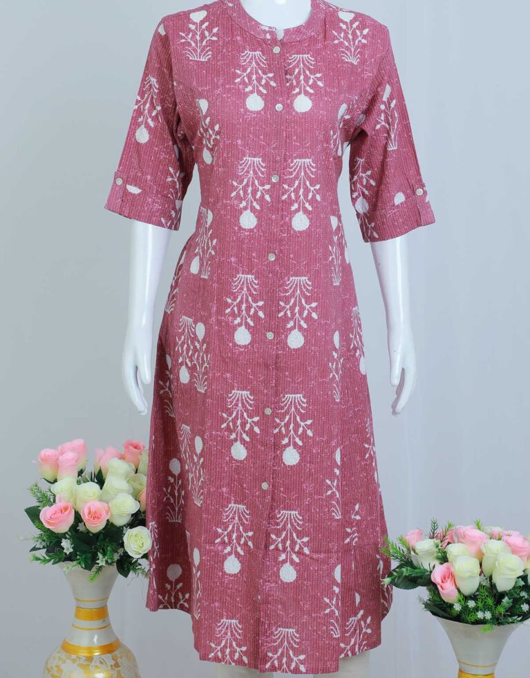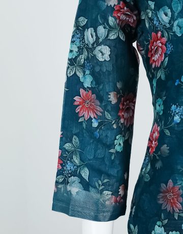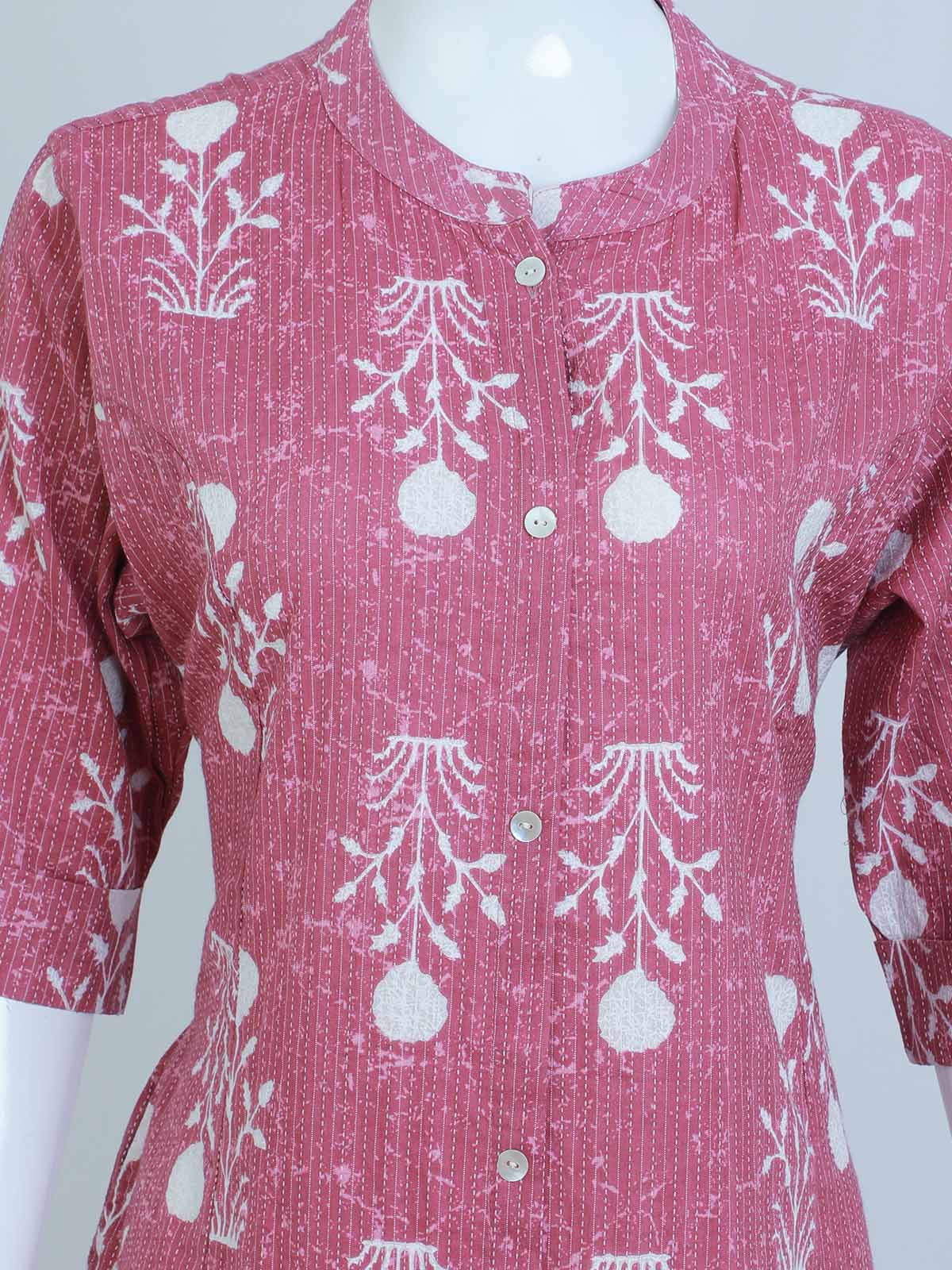 RINTED COTTON FABRIC WITH CHINESE COLLAR AND CUFF SLEEVES