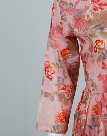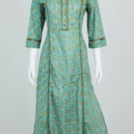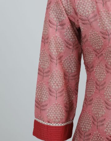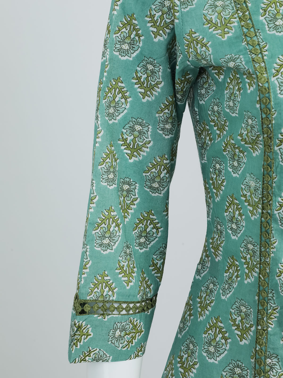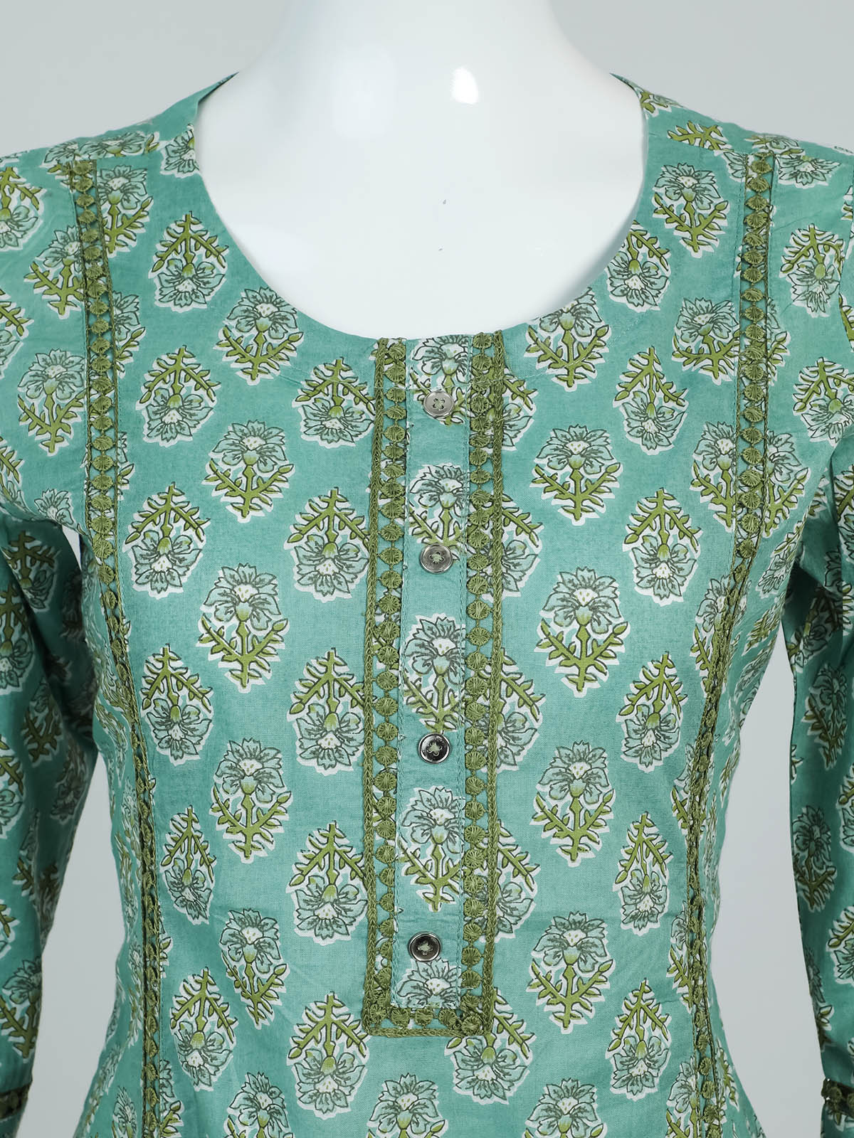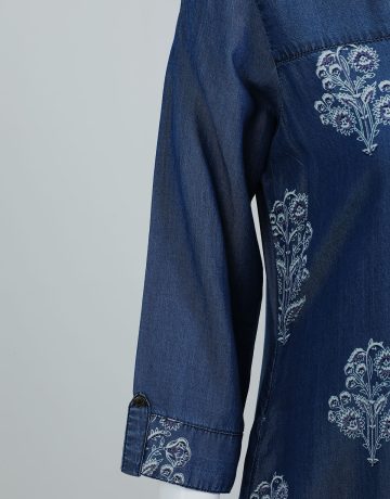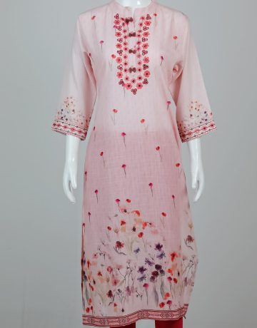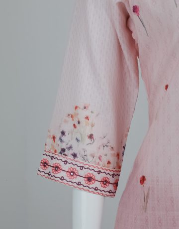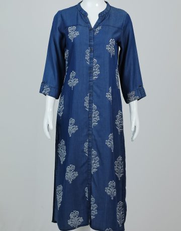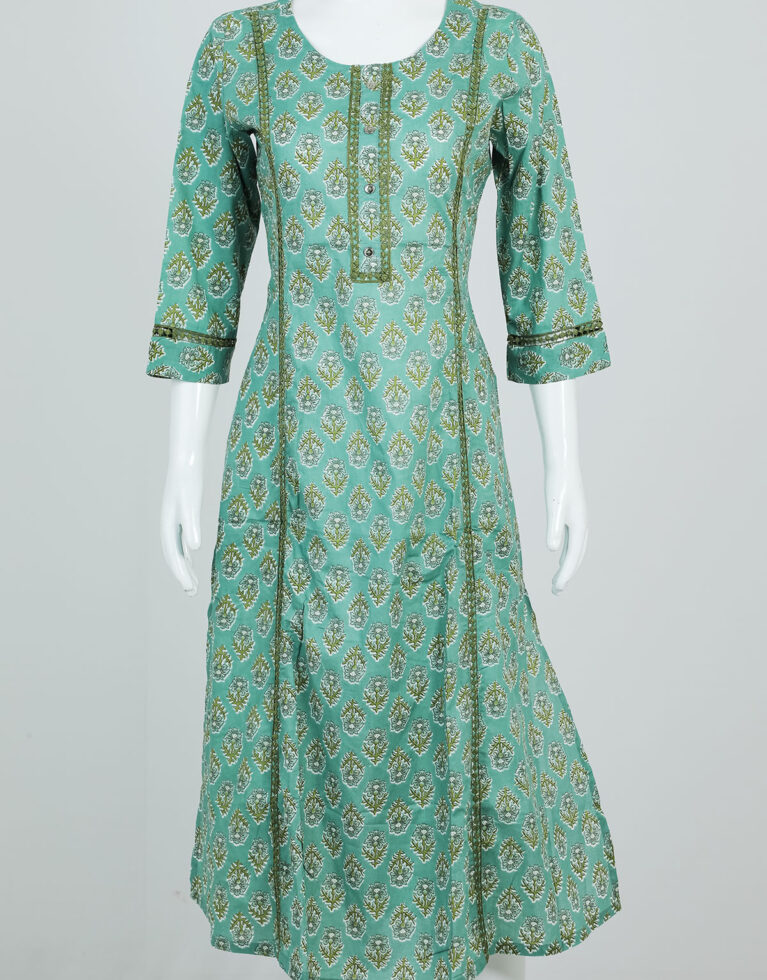 TOP – A-LINE KURTI WITH PRINTED COTTON FABRIC AND EMBROIDARY IN YOLK AND SLEEVES.