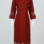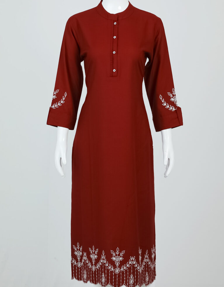 PLAIN COTTON TOP WITH CHINESE COLLAR AND THREAD WORK IN THE SLEEVES AND BORDER