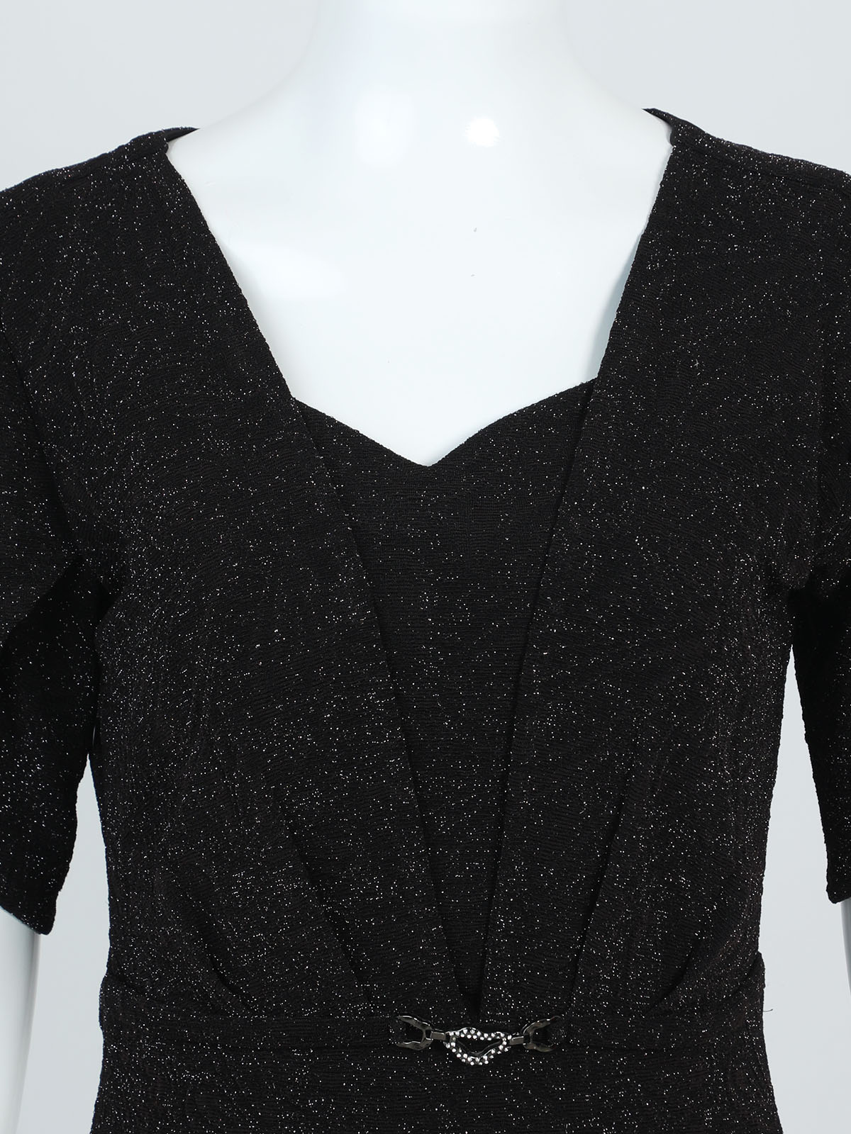 COCKTAIL GOWN WITH OVERLAPPING SLEEVES AND NECKLINE.