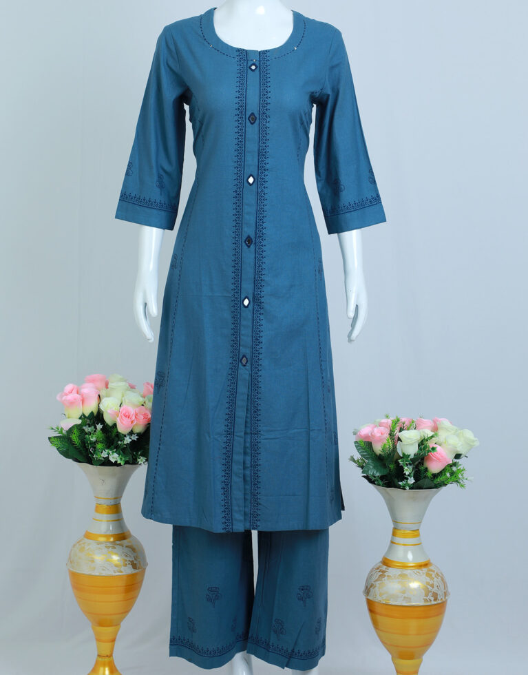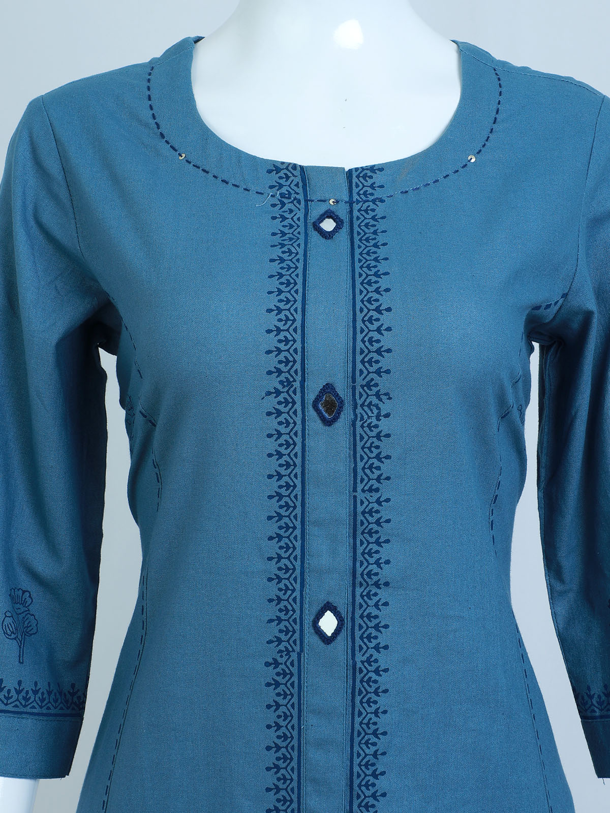 TOP – PRINTED COTTON FABRIC WITH THREAD WORK AND MIRROR WORK IN THE PANEL