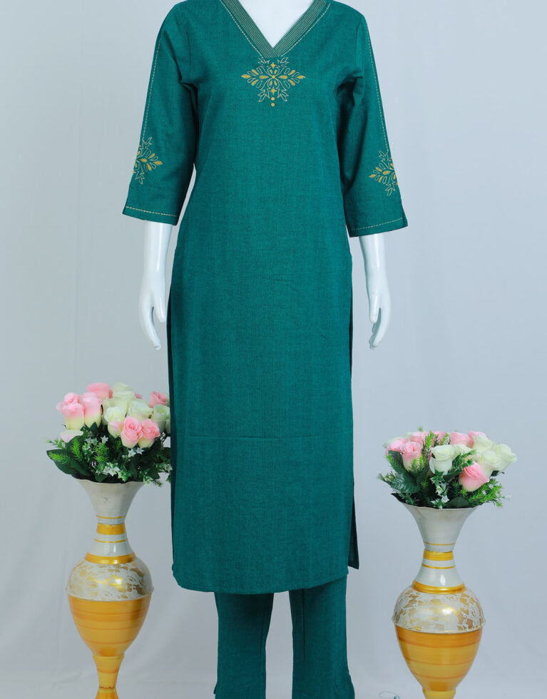 BOTTOM-– PLAIN COTTON PANT WITH THREAD WORK BORDER