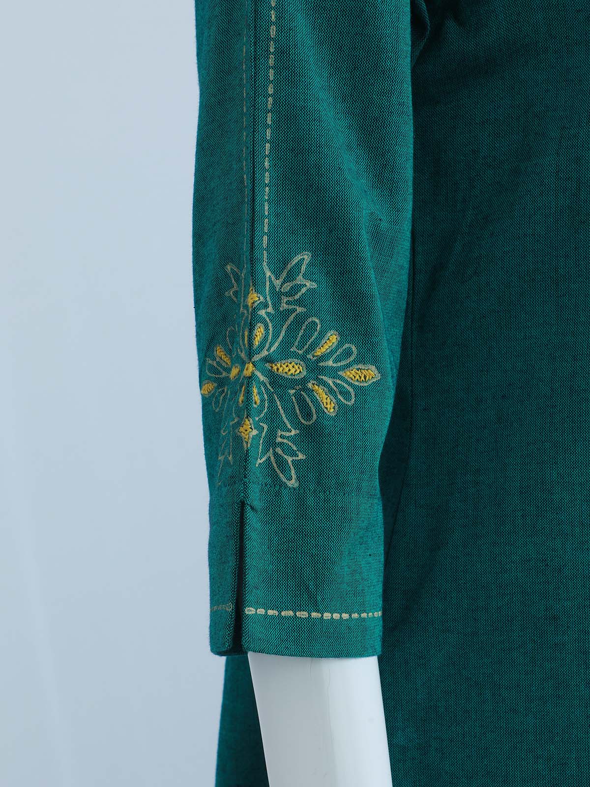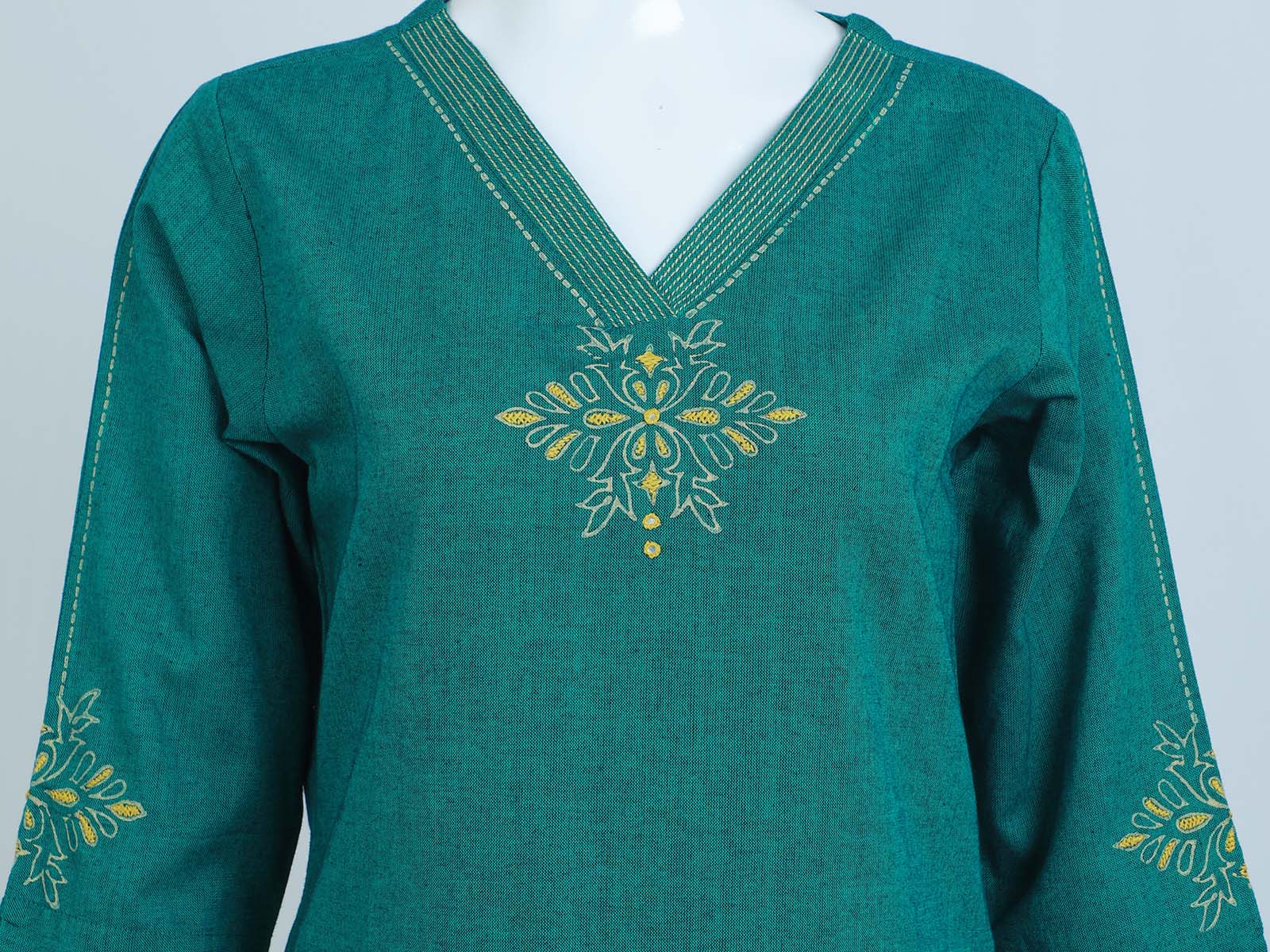 TOP – PLAIN COTTON FABRIC WITH THREAD WORK IN THE SLEEVES AND V- NECK