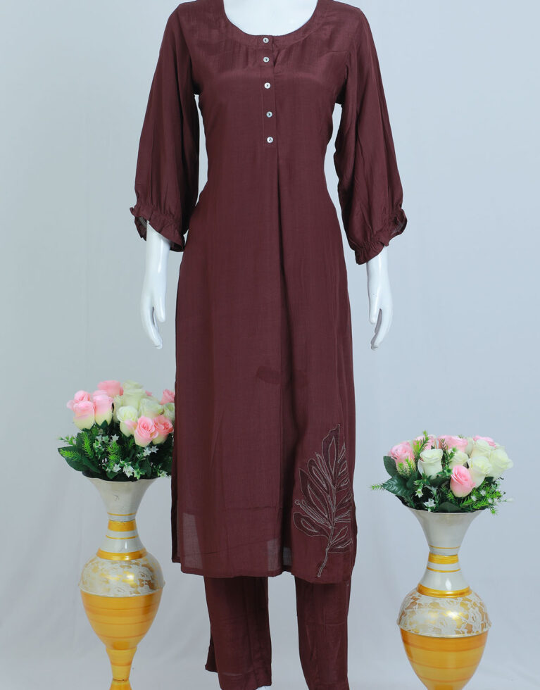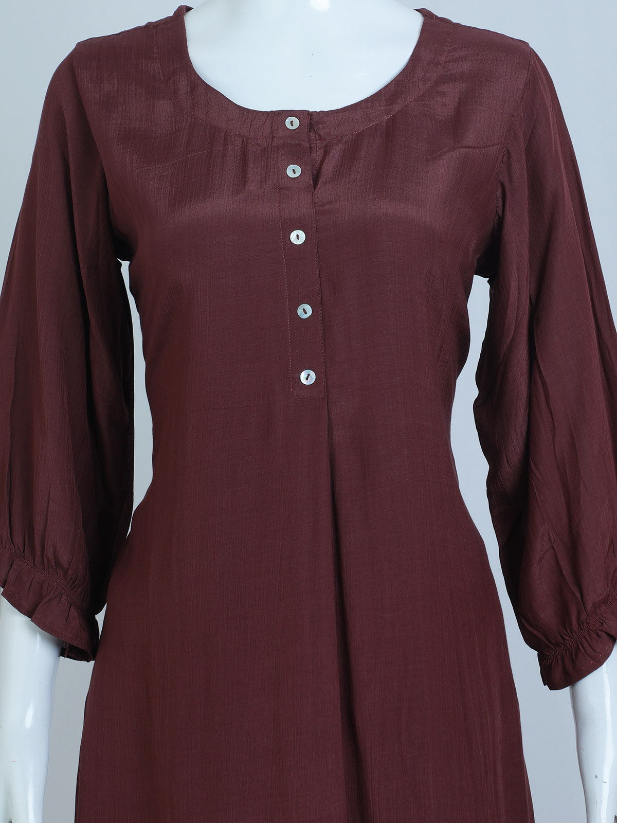 TOP – PLAIN CREPE SILK TOP WITH ROUND NECK BALOON SLEEVES AND THREAD WORK