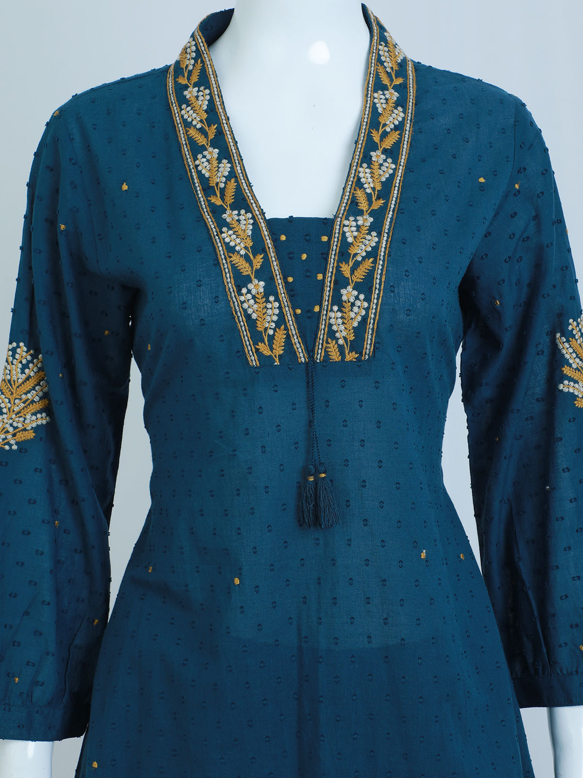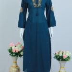 TOP – PLAIN COTTON KURTHI WITH THREAD WORK IN V- NECK AND SLEEVES