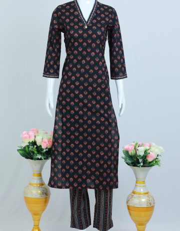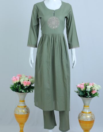 TOP – PLAIN SILK COTTON FABRIC WITH ANGHARKA NECK AND THREAD WORK
