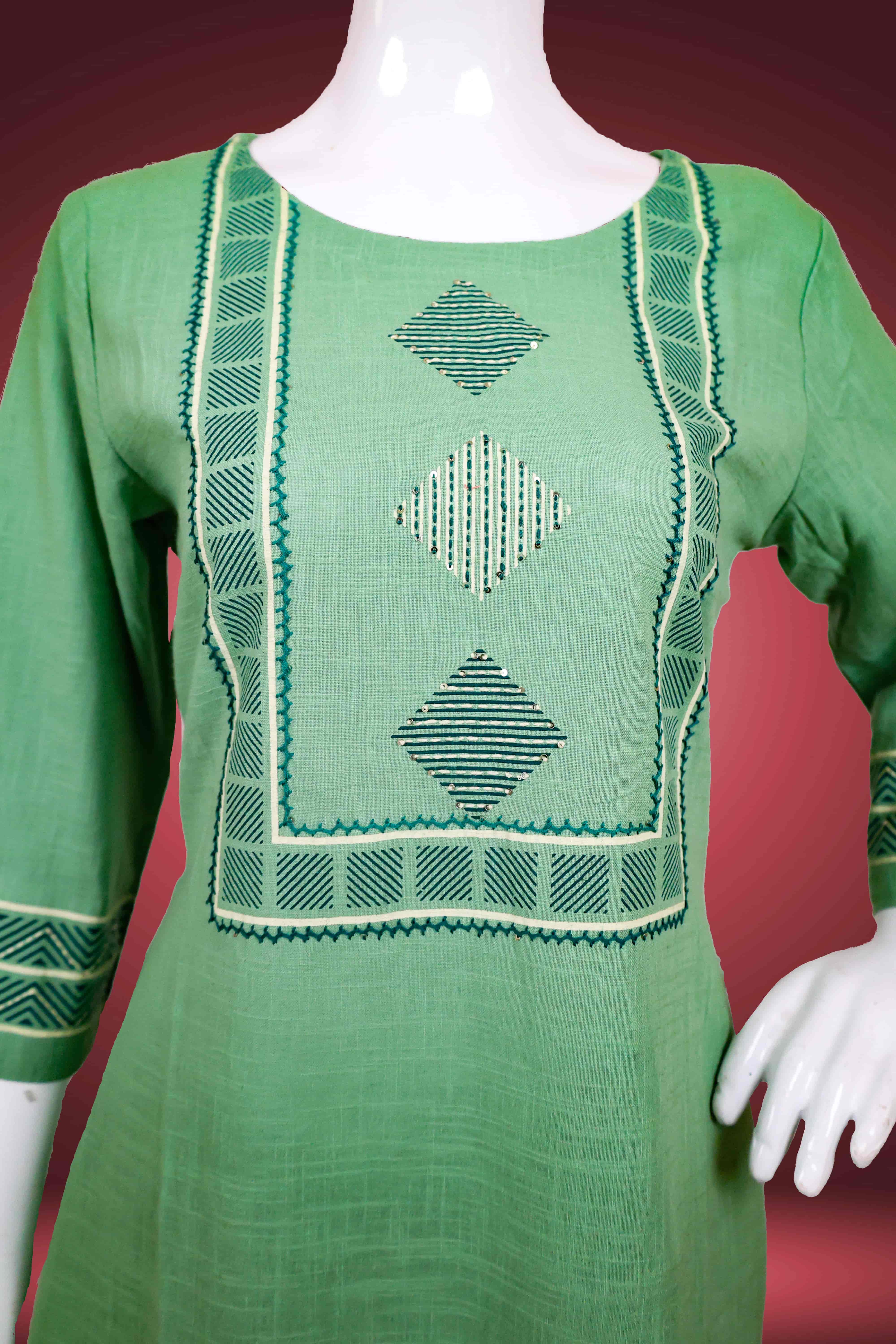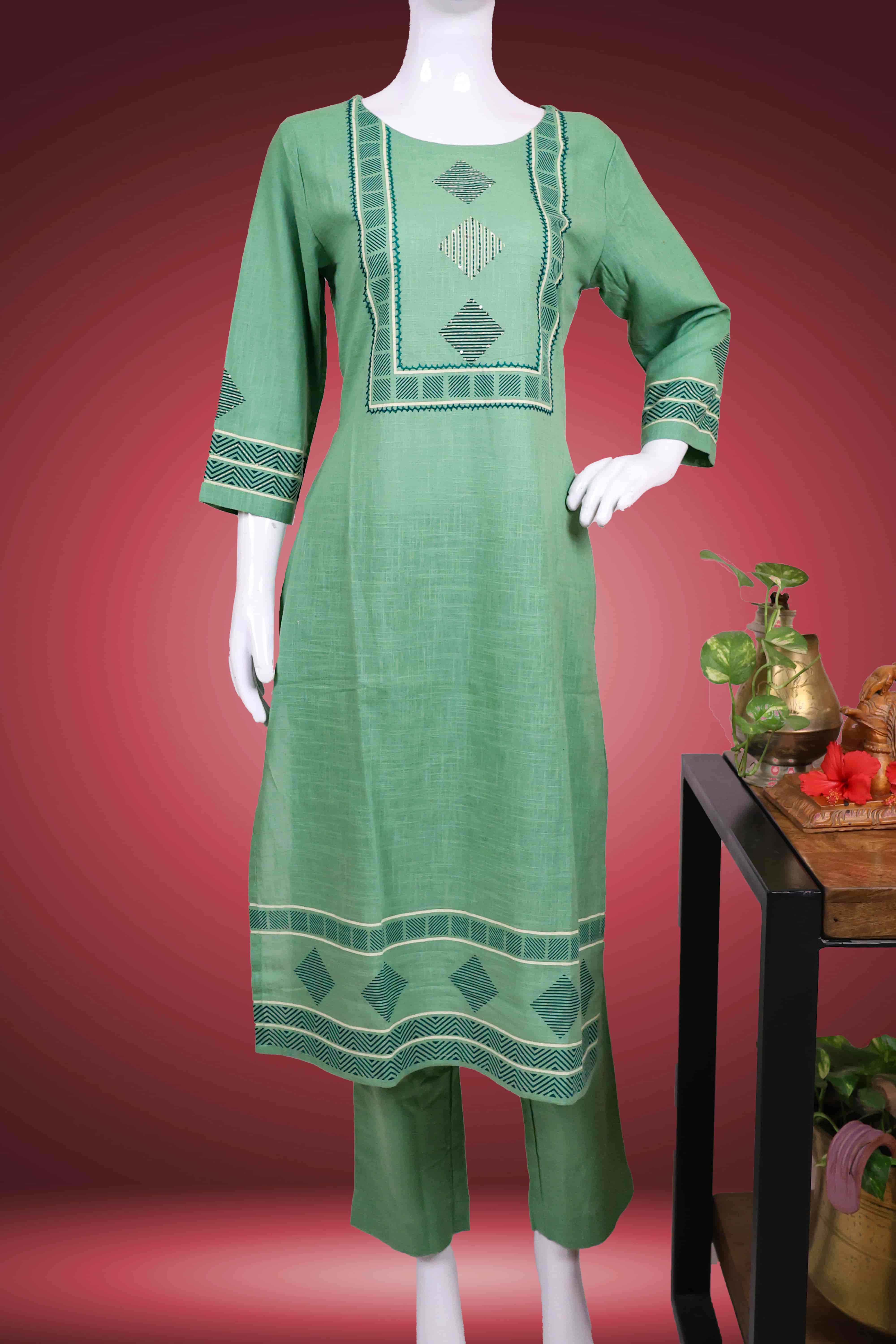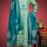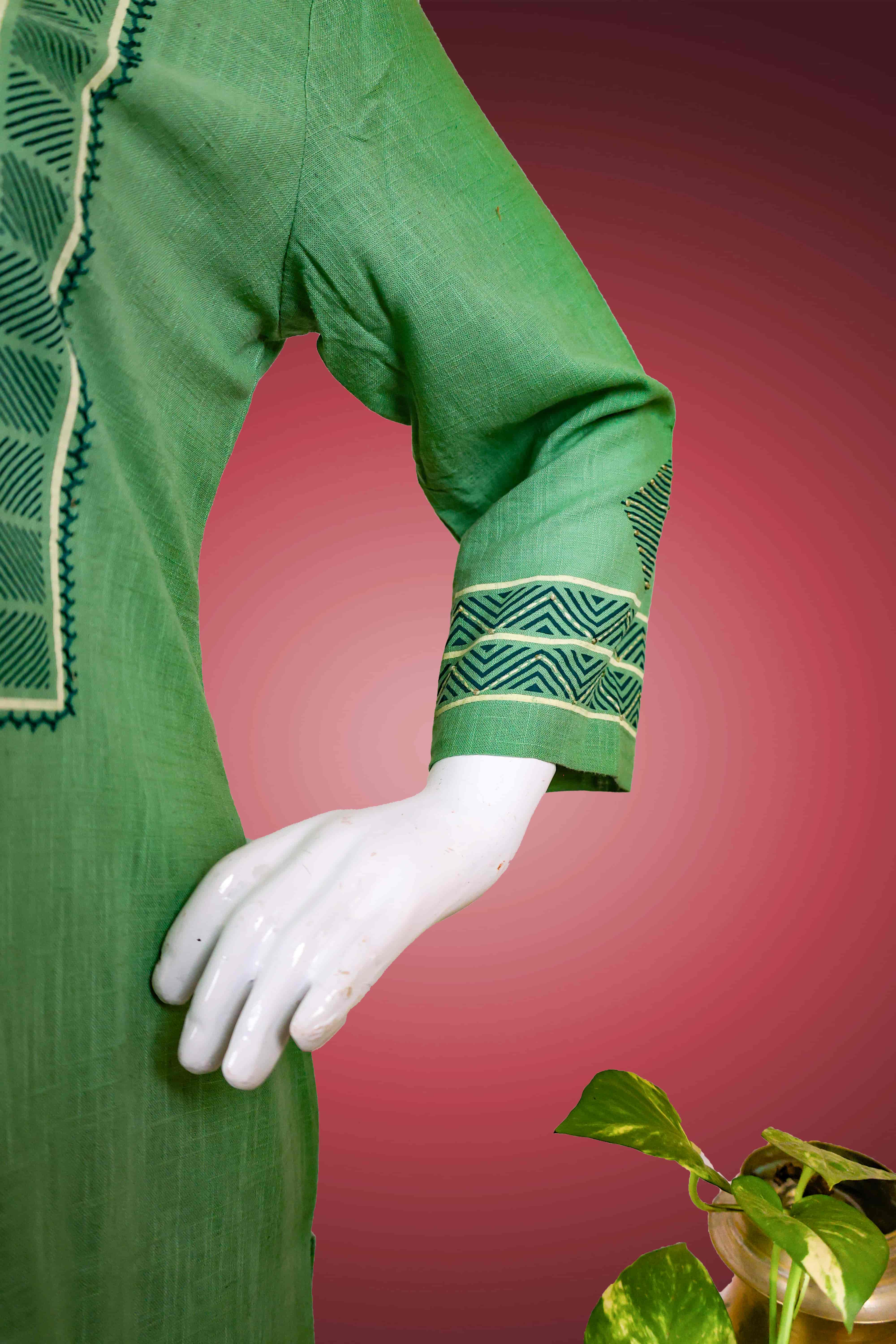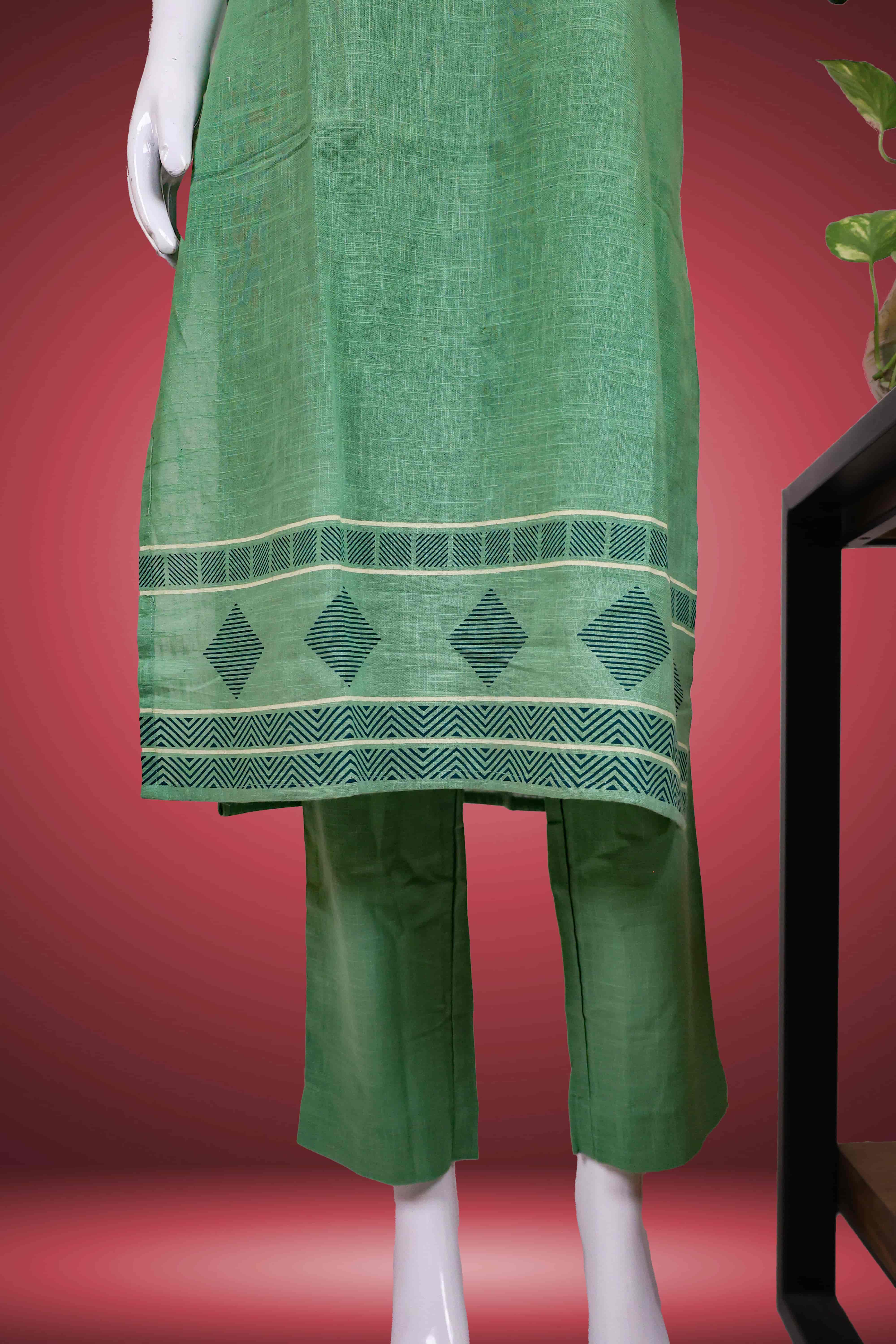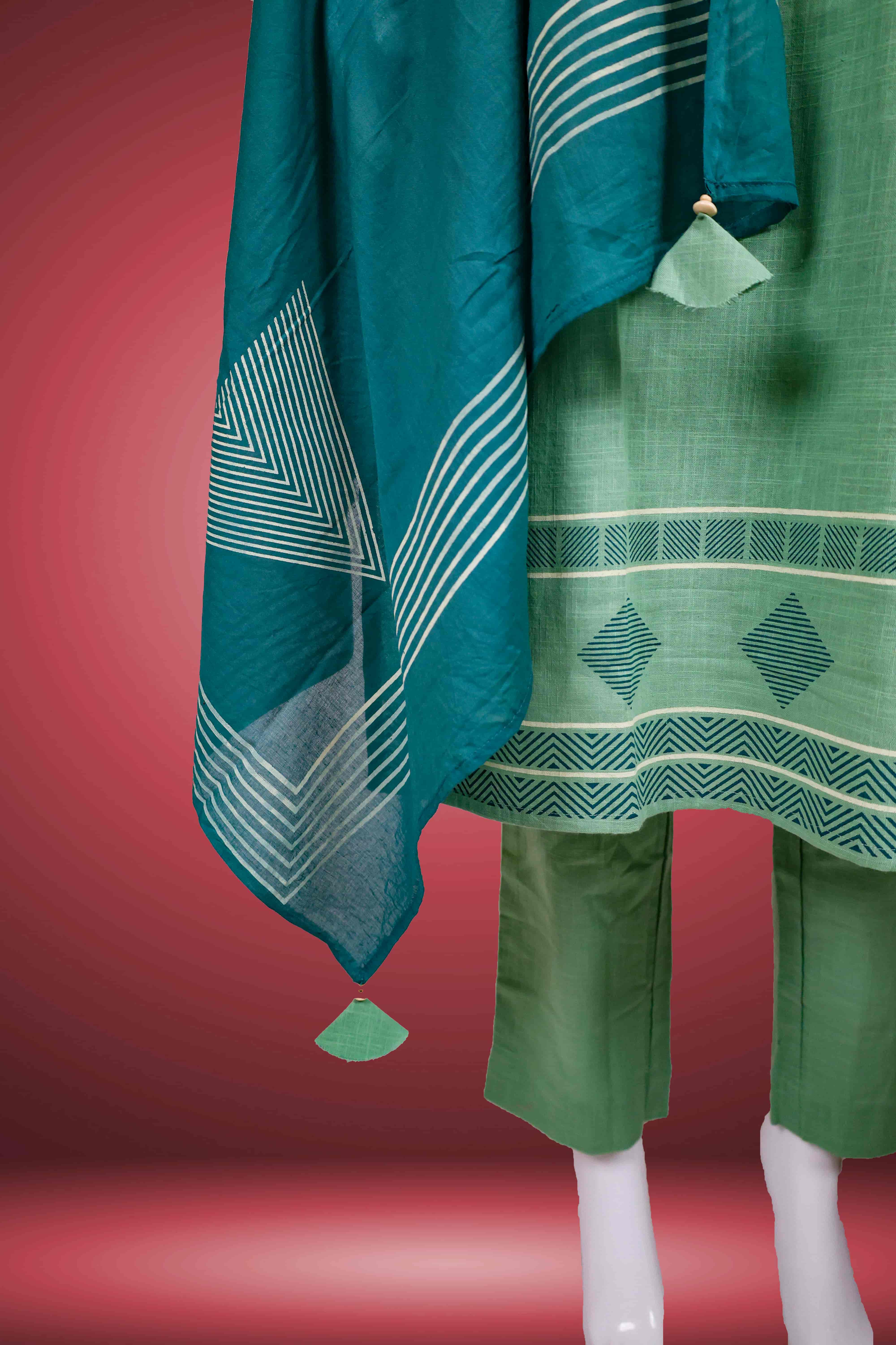 TOP – PLAIN COTTON FABRIC WITH GEOMETRIC PRINTS IN THE YOLK,BOTTOM AND SLEEVES.