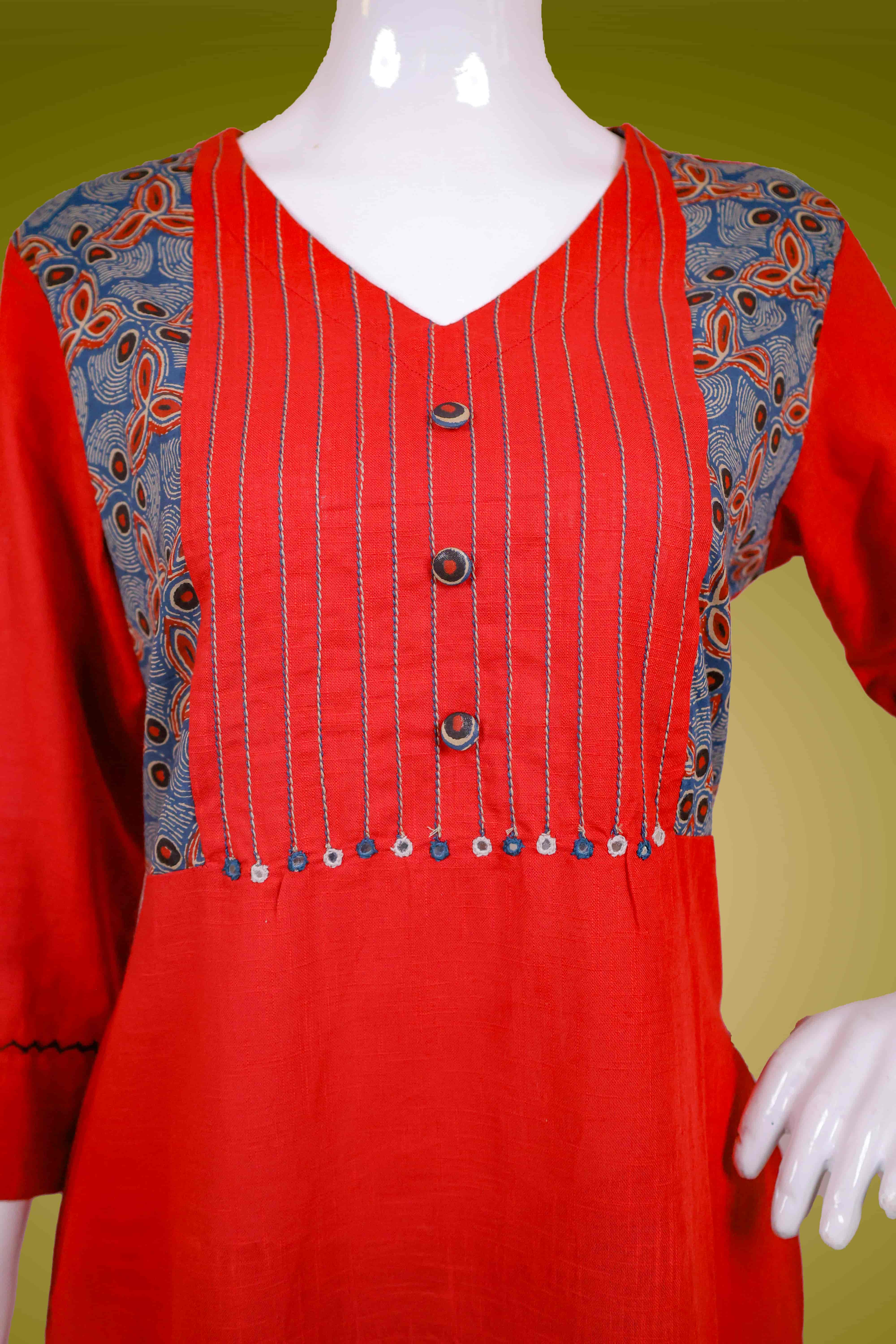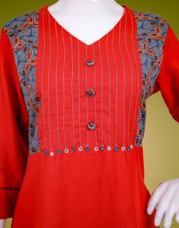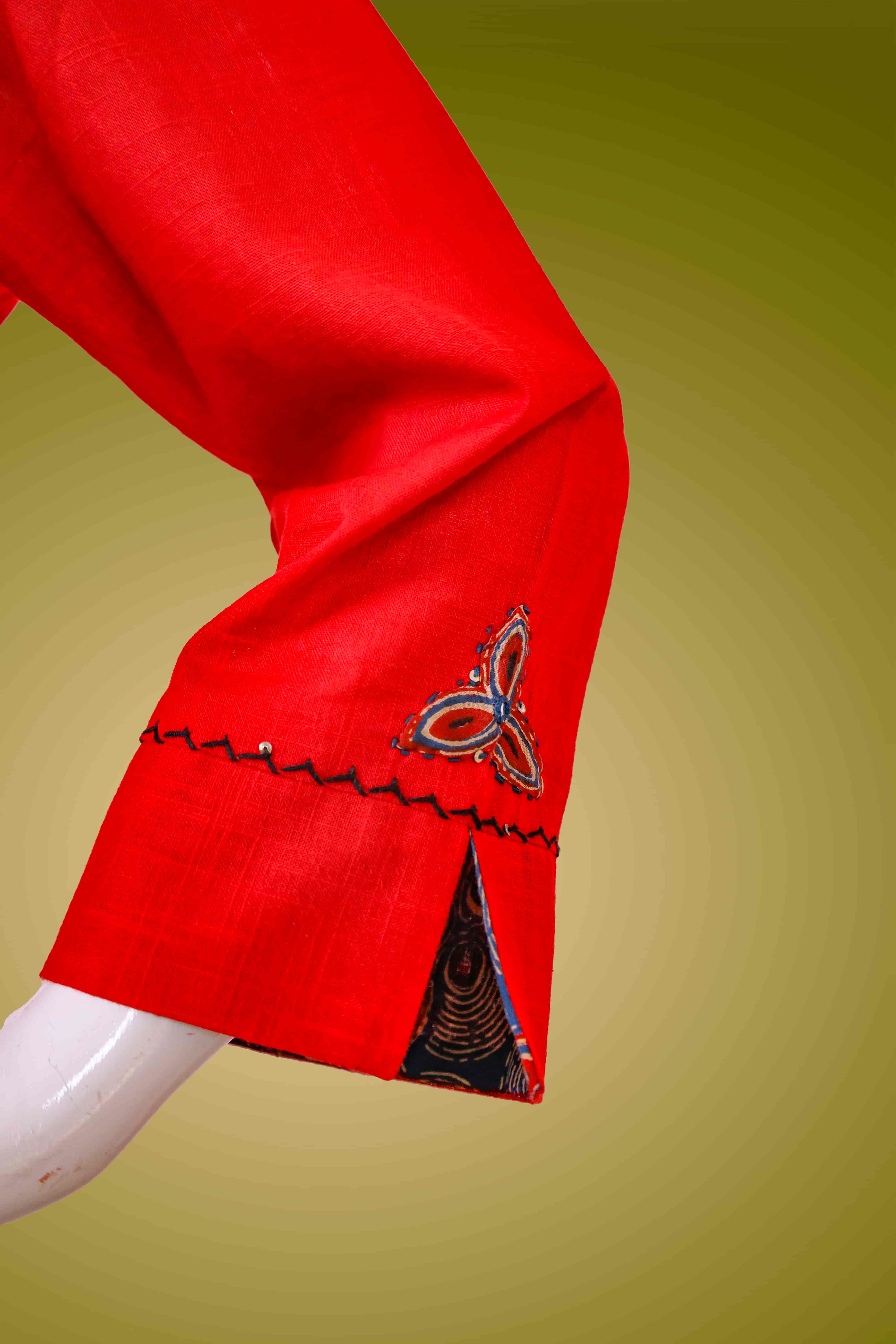 TOP – PLAIN COTTON FABRIC WITH THREAD AND PATCH WORK IN THE YOLK AND SLEEVES.