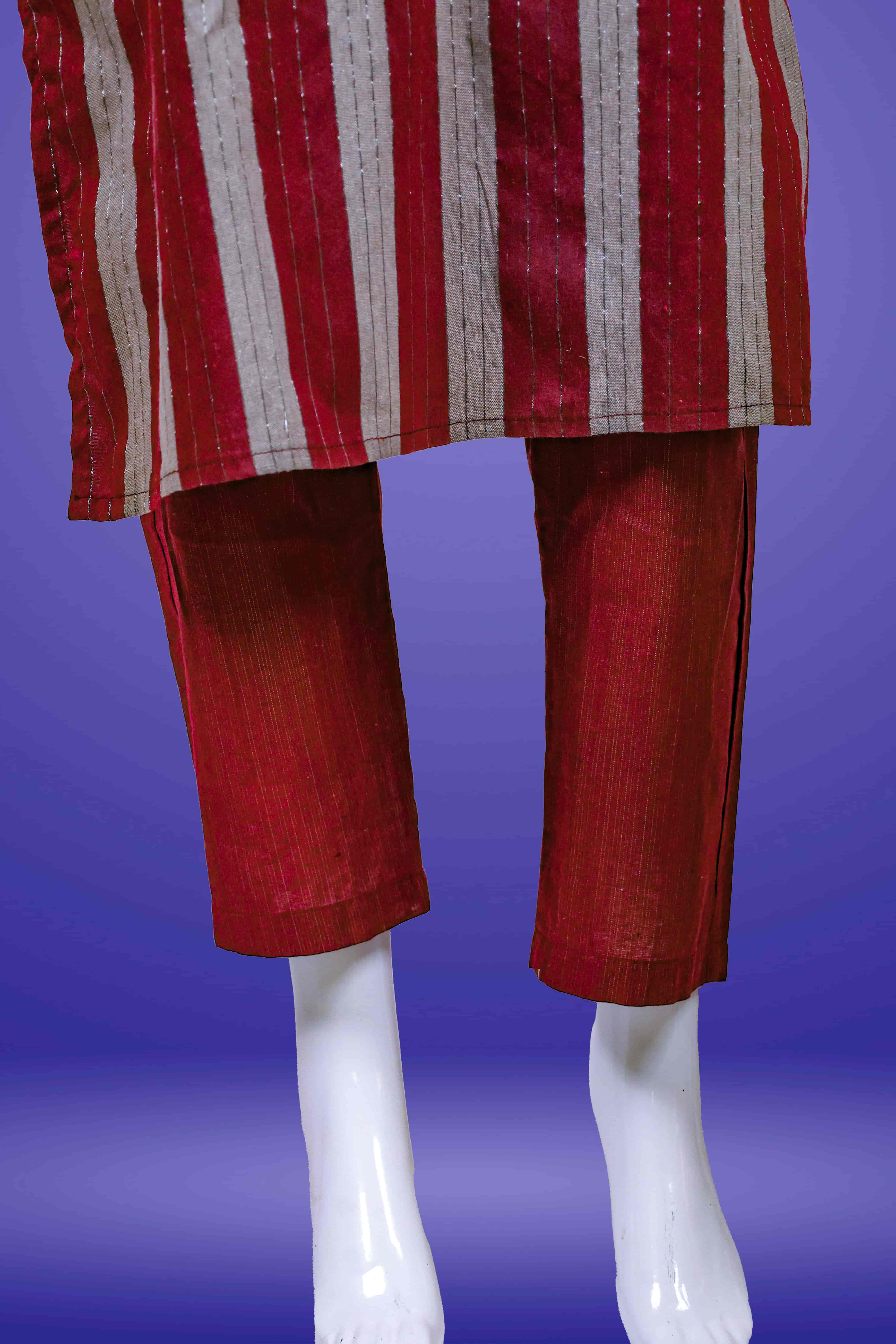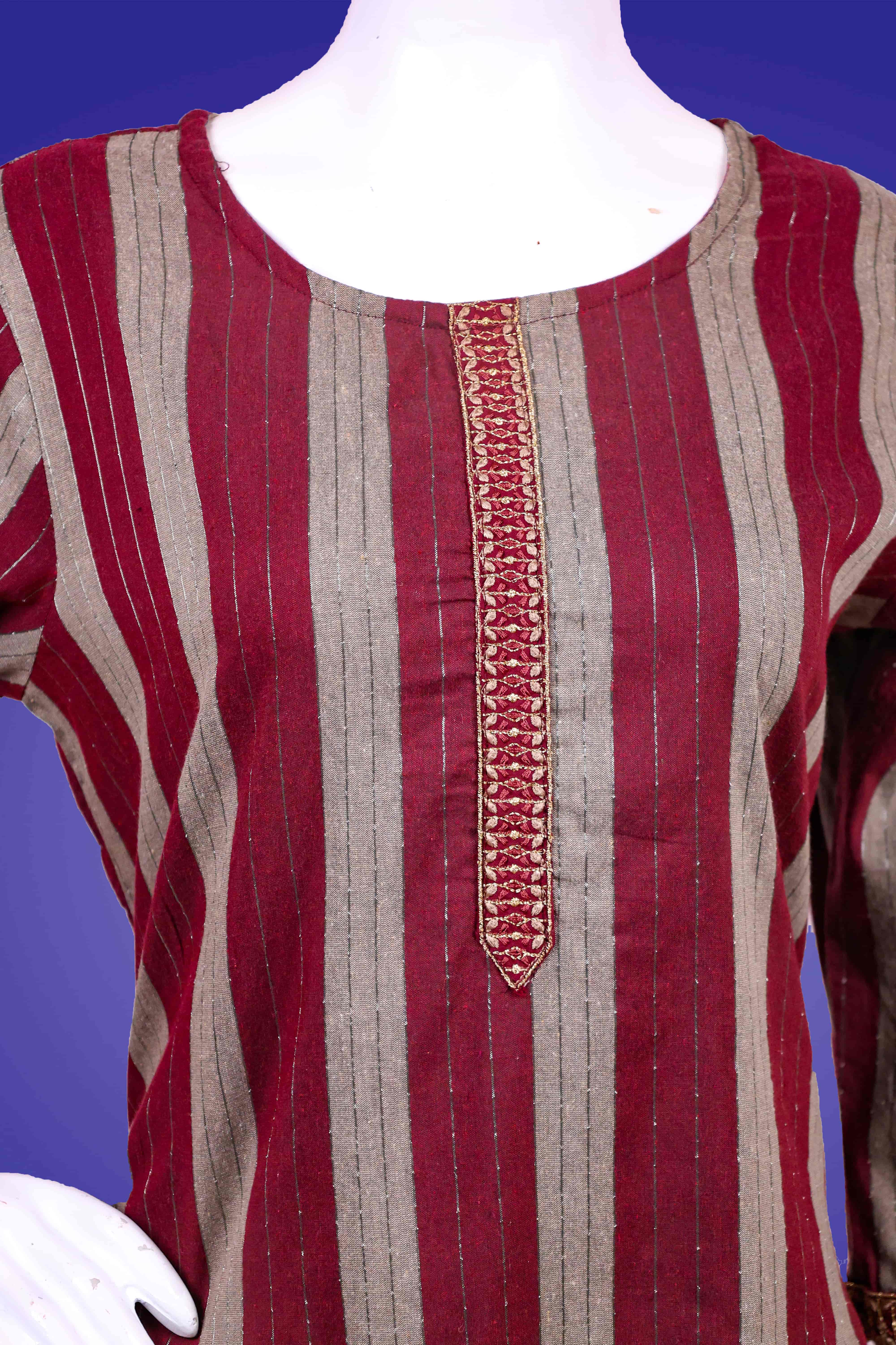 TOP – STRIPED COTTON FABRIC WITH MILD WORK IN THE YOLK AND SLEEVES.