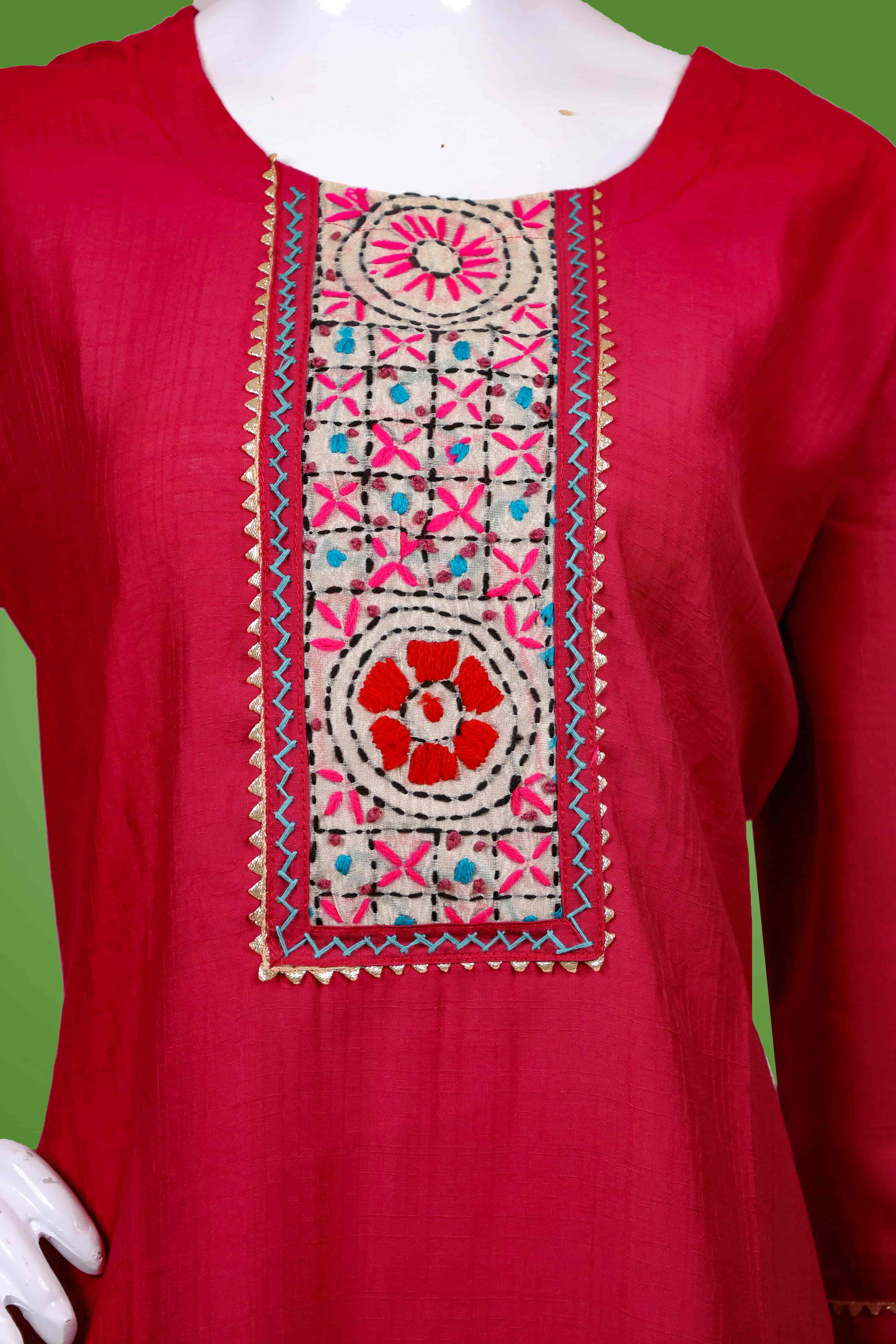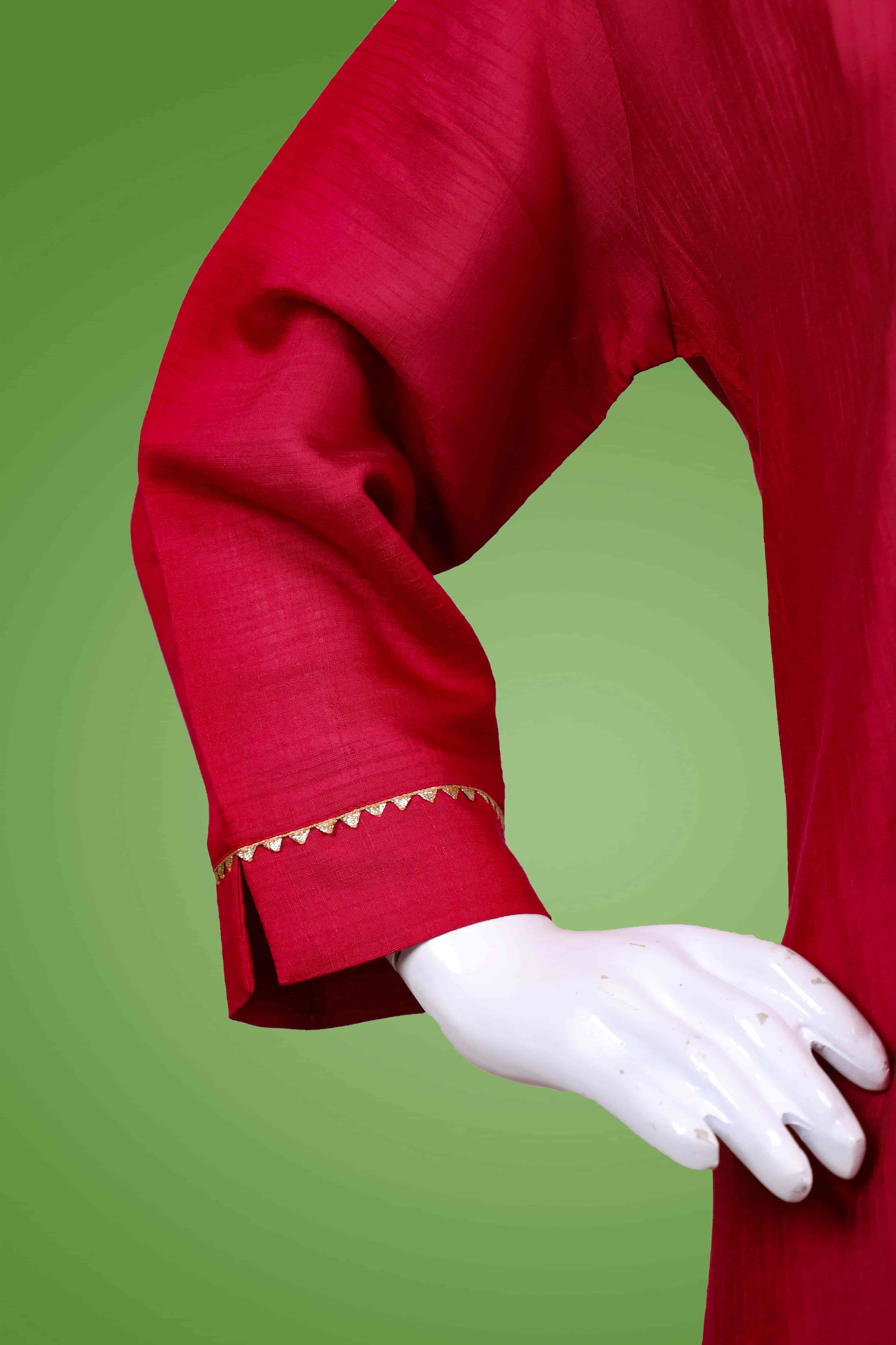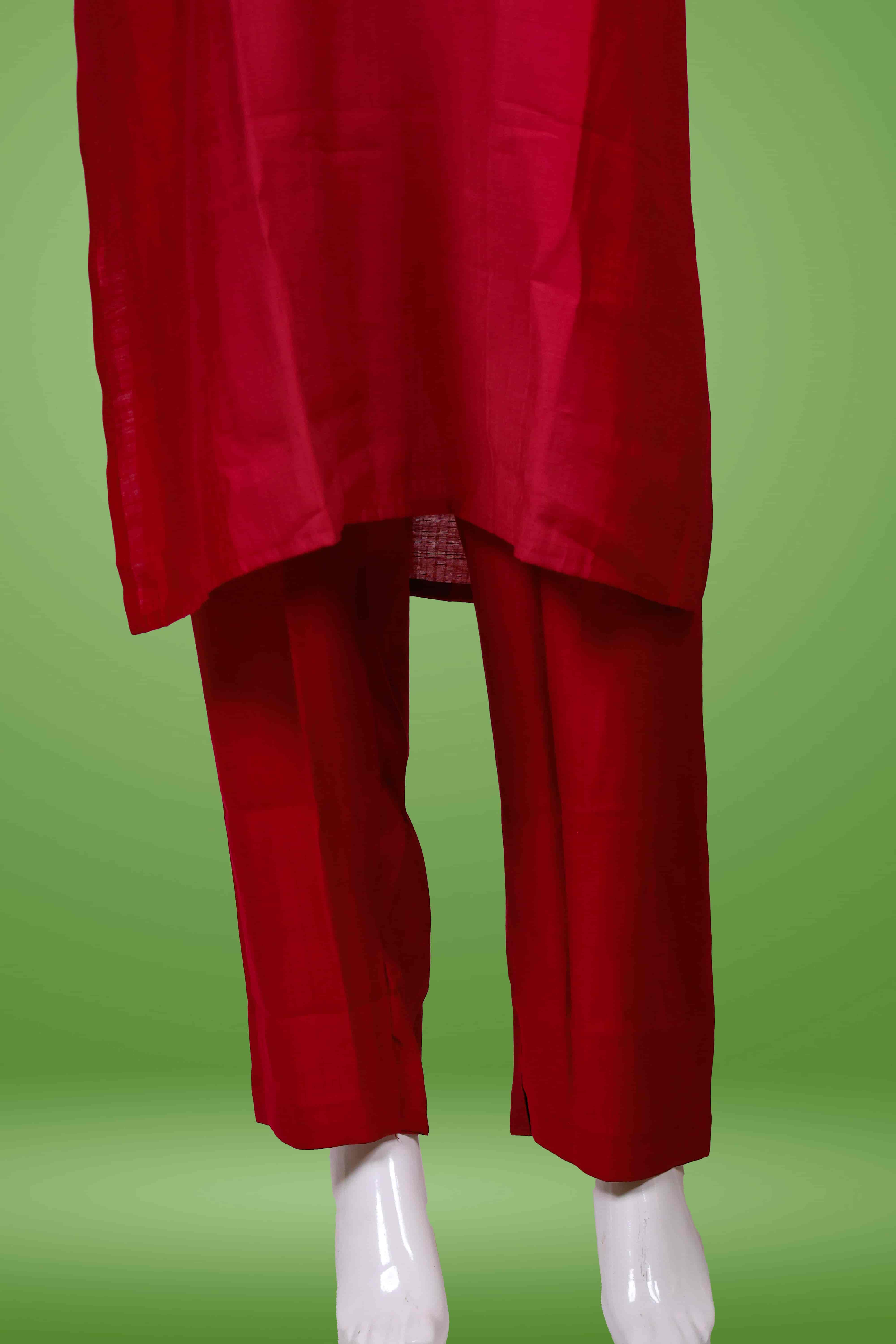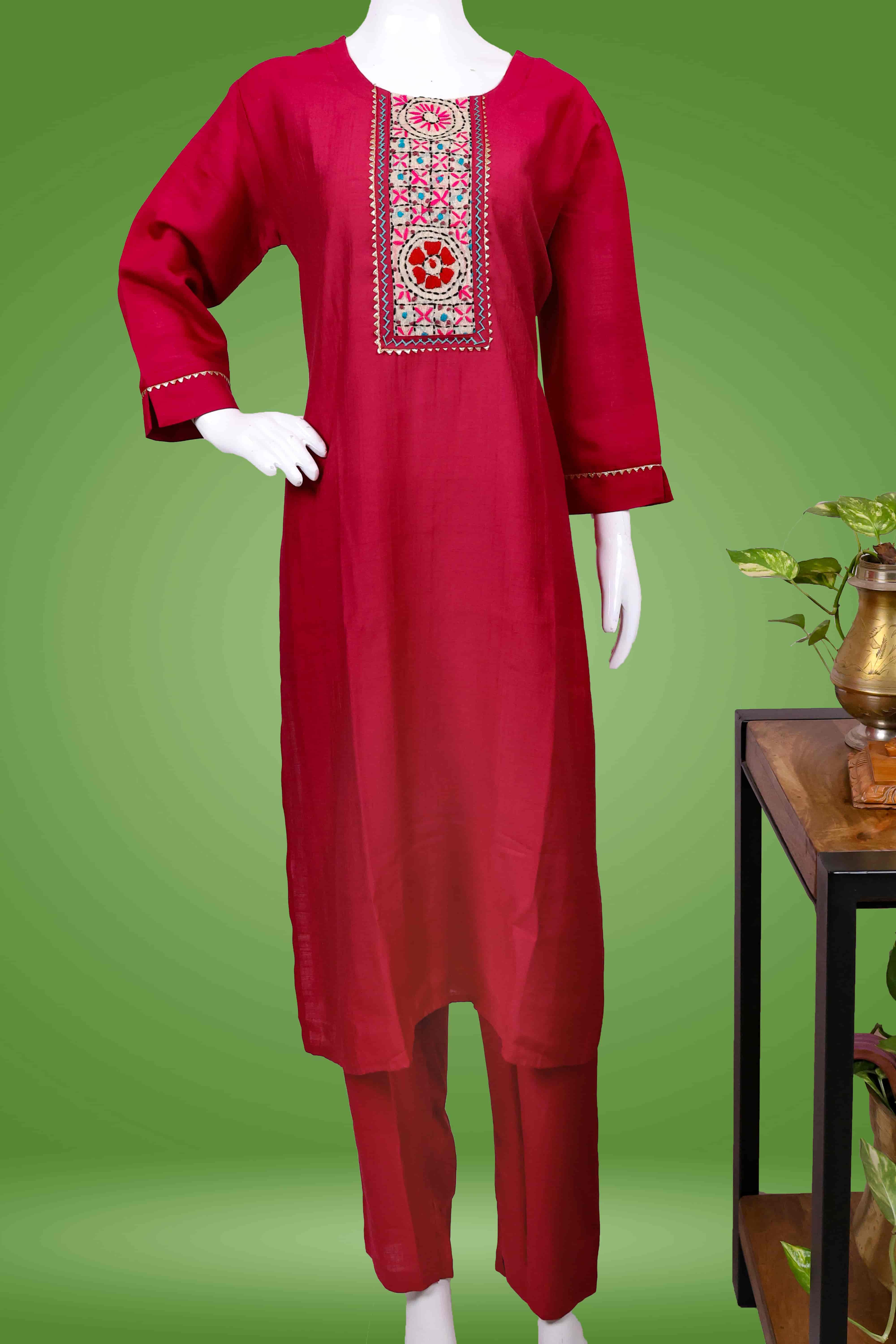 TOP – PLAIN COTTON FABRIC WITH THREAD WORK IN THE YOLK AND SLEEVES.