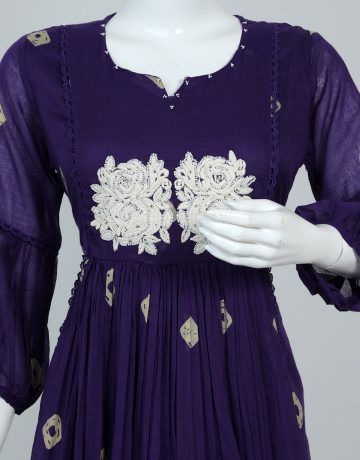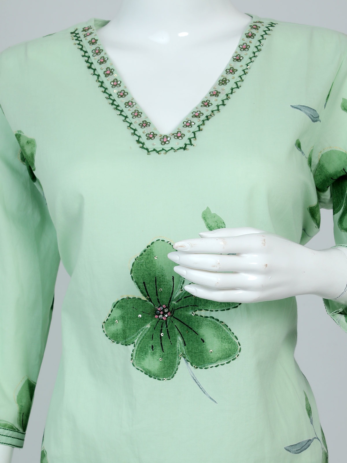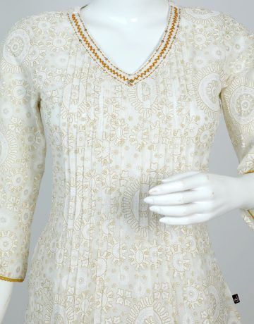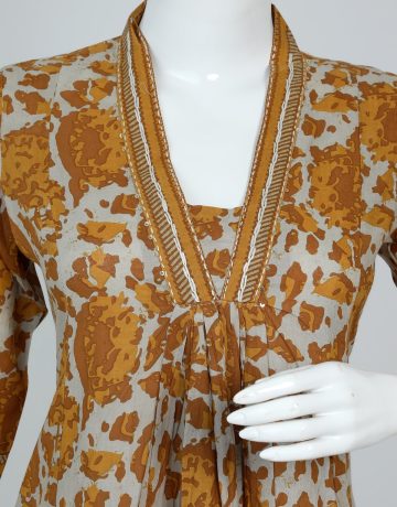 TOP – COTTON FABRIC WITH FLORAL MOTIFS AND WORK IN V-NECK AND SLEEVES.