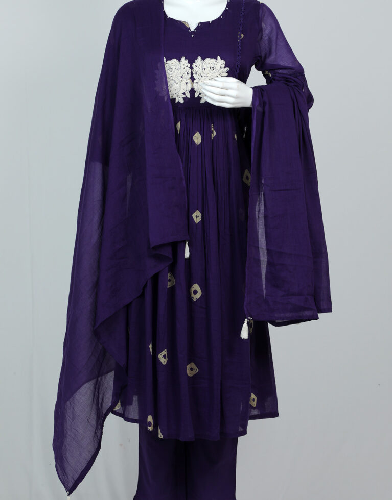 TOP – SOFT COTTON FABRIC WITH FLORAL MOTIF WORK IN THE YOLK AND BALOON SLEEVES