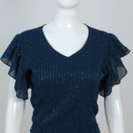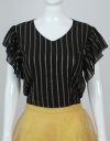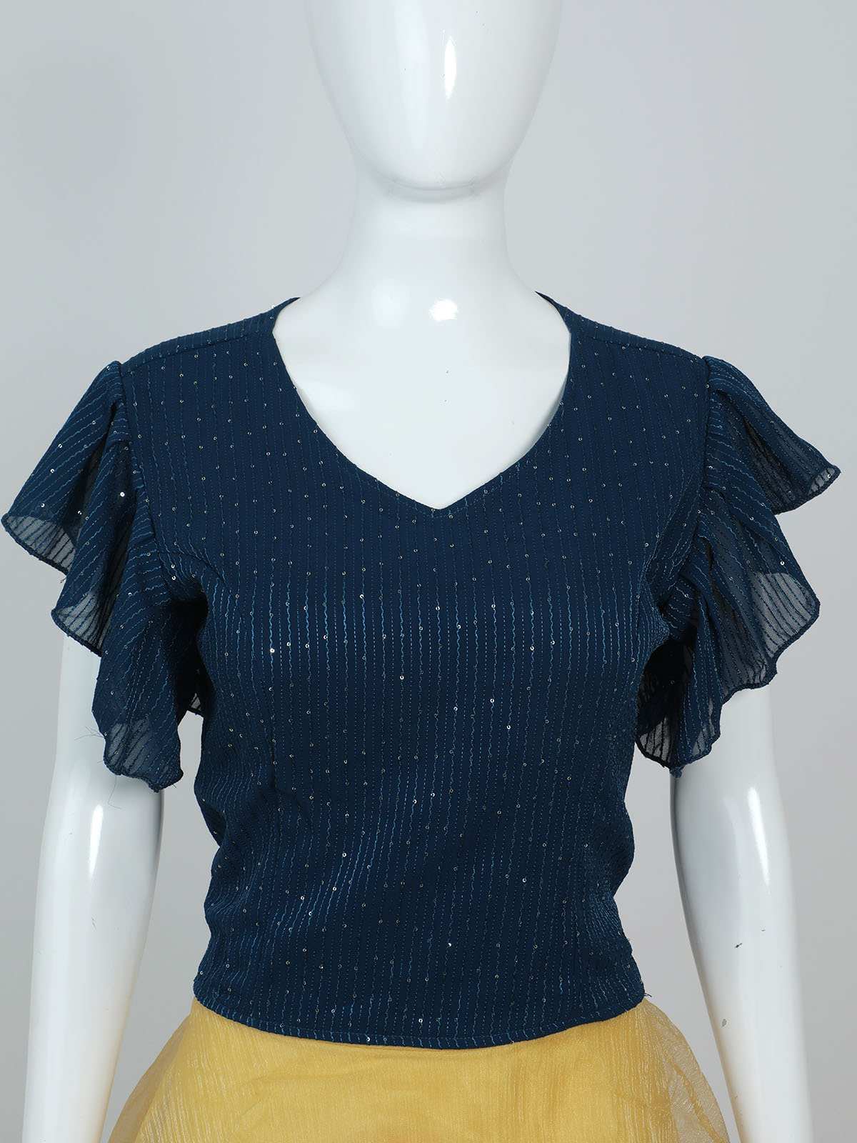 RUFFLE SLEEVED SEQUENCE CROP TOP WITH V-NECK.