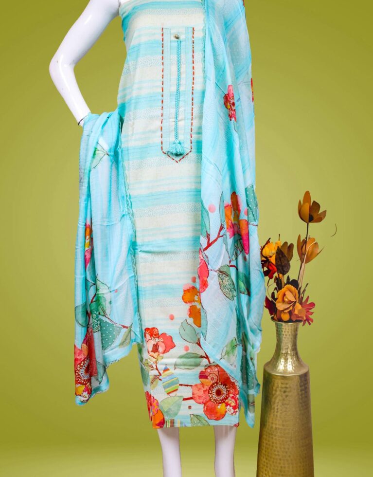 UNSTITCHED SALWAR MATERIAL BLUE A5855